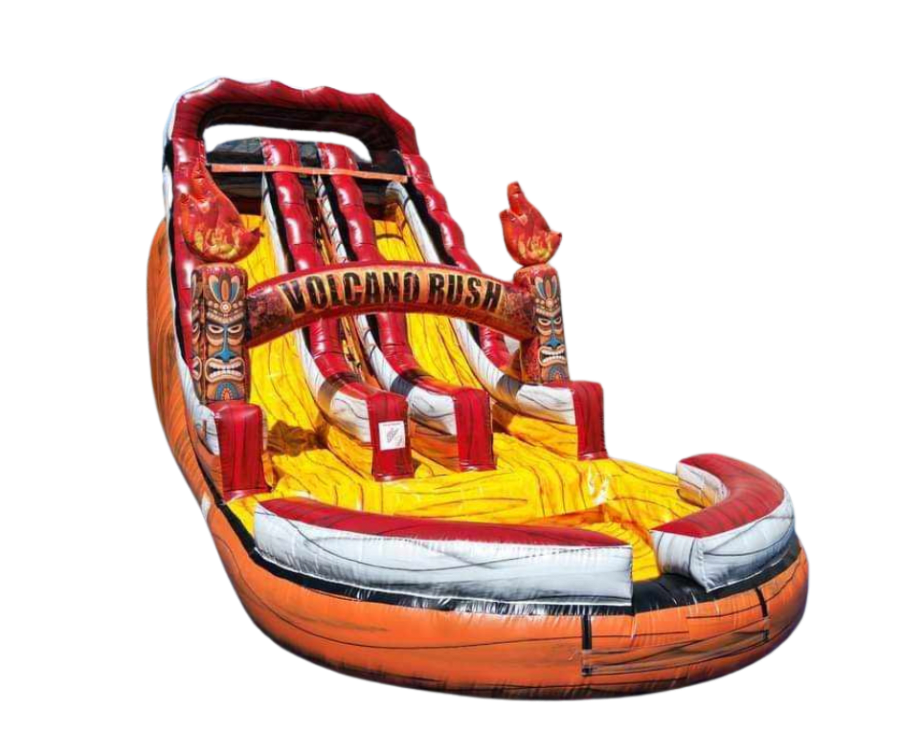 Don't miss out on creating memories that will last a lifetime. Book the 18' Volcano Rush Double Lane today and let the good times roll! 🌴