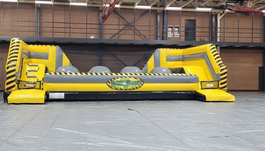 Have you ever wanted to try your Ninja or LeapFrog skills? Our classic Leaps & Bounds is now available in the new color combination. This incredibly popular interactive inflatable features a series of four giant inflatable balls which challengers must run or leap across from ball to ball like a frog to the other side! But don’t worry if you fall off, this floor of the pit protected by our super-soft patented Zero Shock™ landing mattress.