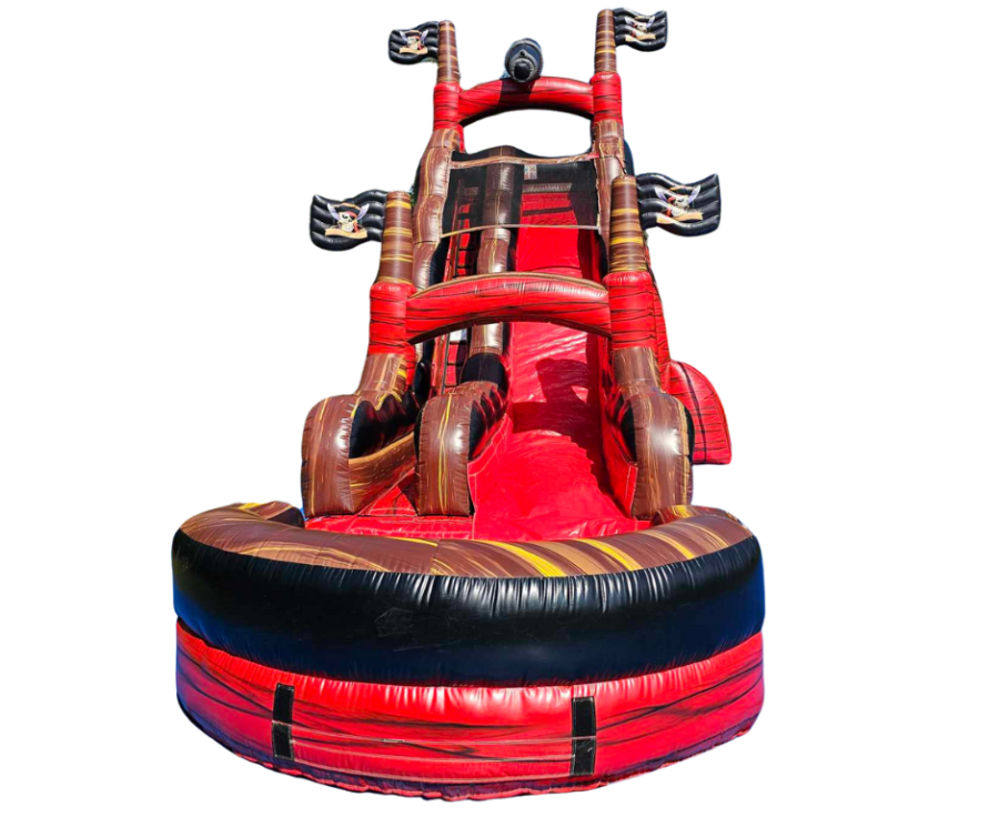 Arghhhhhh, Ahoy Mates!!! Our inflatable pirate slide is huge, fast and fun. Participants climb to the top of the inflatable pirate slide and swoop down. This will be eye catching at your next event!