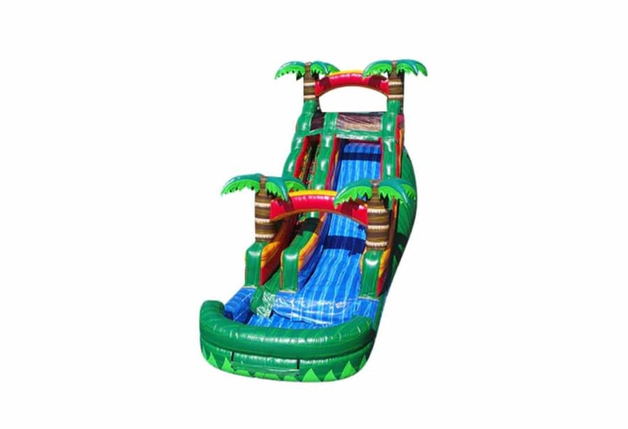 Our meticulously designed waterslide not only boasts a stunning tropical aesthetic but also features a single wide lane for an exhilarating slide down. The generous landing pool enhances safety and ensures a smooth finish to every slide. Whether you're hosting a birthday, family reunion, or community event, the Seaweed Shoals guarantees endless fun and entertainment for guests of all ages.